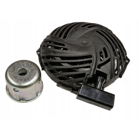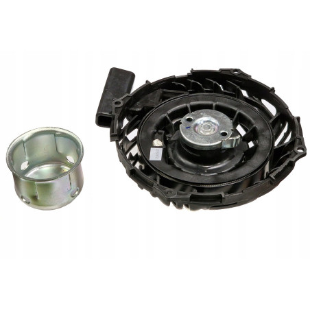 Rozrusznik linkowy ręczny Briggs & Stratton z kielichem (047282767375) to mechaniczny system rozruchu silnika spalinowego oparty na manualnym pociągnięciu linki, koniecznym do obrócenia wału korbowego i zapoczątkowania cyklu pracy jednostki. W zestawie znajduje się kielich (starter grip), który ułatwia trzymanie i ergonomiczne pociągnięcie linki rozruchowej.