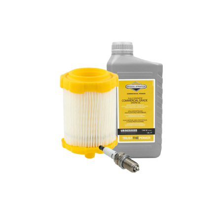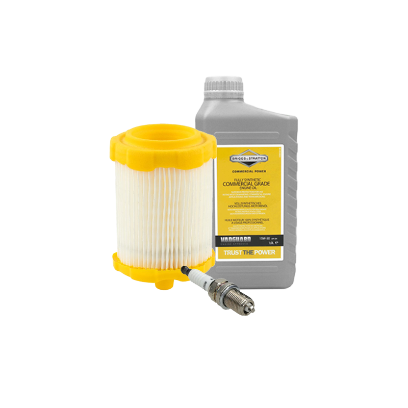 Zestaw obsługowy do silników Briggs & Stratton serii 700, 750, 775. Zawiera filtr powietrza, świecę zapłonową i olej. Pełny przegląd w jednej paczce.